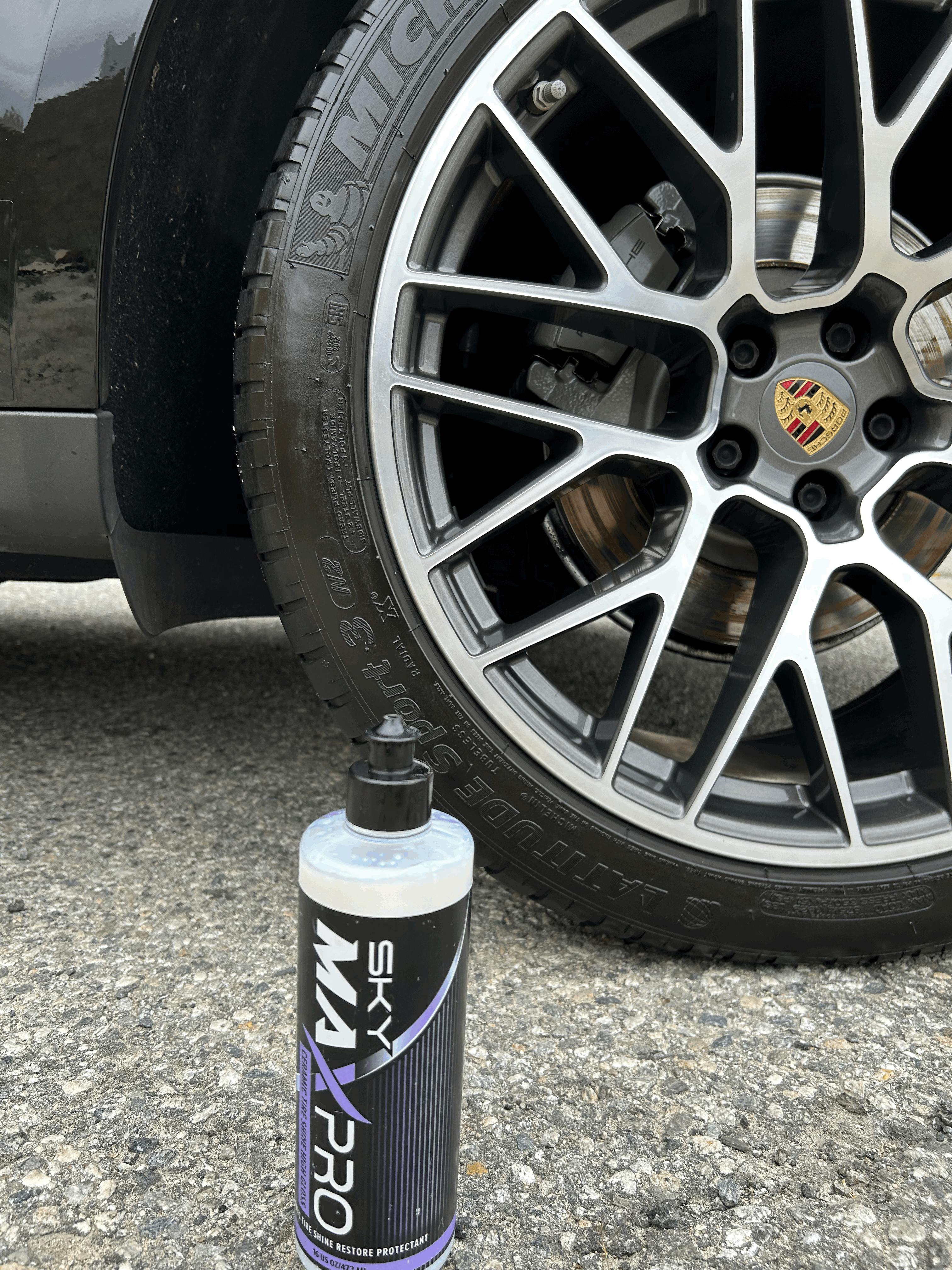 Our advanced formula, silicon dioxide (Si02) and polymers, creates a deep, black color of your tires
